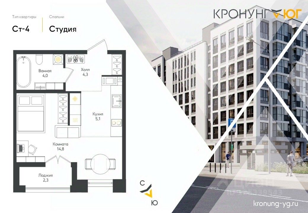 Продаётся студия 29,4 кв.м в жилом комплексе Кронунг ЮГ. Квартира сдается без отделки.