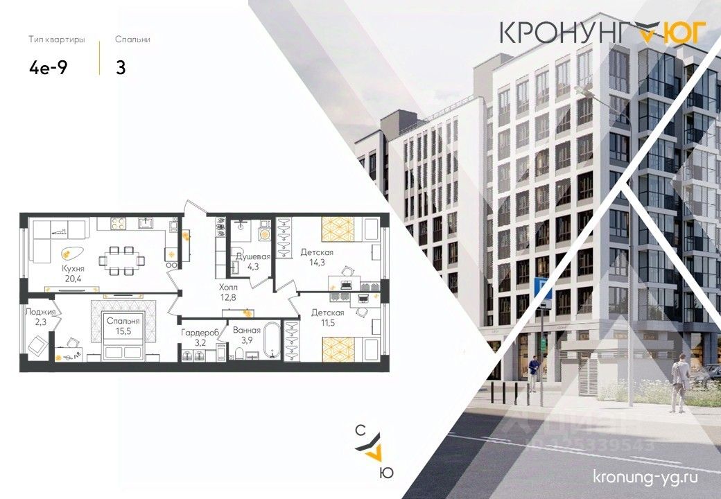 Двухсторонняя квартира с тремя спальнями и просторной кухней-гостиной.