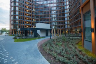 На 1000 кв. м. общественных пространств расположится уютный лобби-бар, ресторан мировой кухни на 80 человек, фитнес-зал и оборудованные коворкинги.