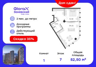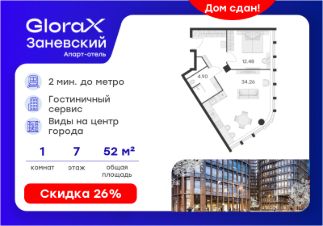 Продается 1-комн. апартамент на 7-м этаже в Апарт-отеле "GloraX Заневский" с сервисом 4*. Старт работы отеля - декабрь 2024 г.! Общая площадь лота составляет 51,64 кв. м, из которых 12,48 кв. м отведено под жилую. Номер апартамента - 736.
