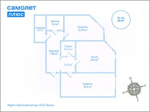 Площадь: 65,6 м², где: