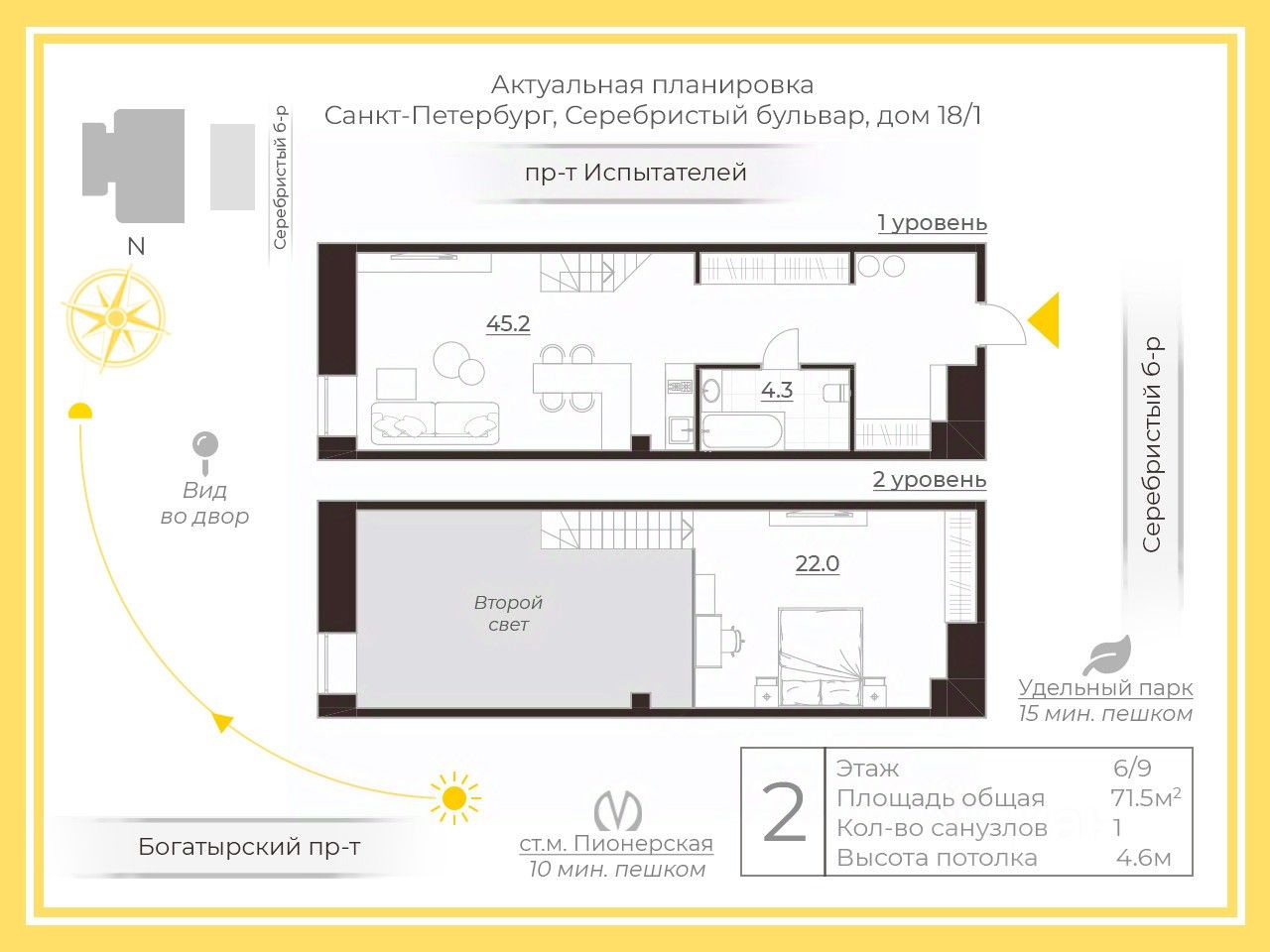 Арт. 105854091 Представляем вашему вниманию уникальные 2-х уравневые апартаменты 71,5 м2 с высокими потолками (4,6 м) в Апарт отеле 4* Serebro by Avenue-Apart.
