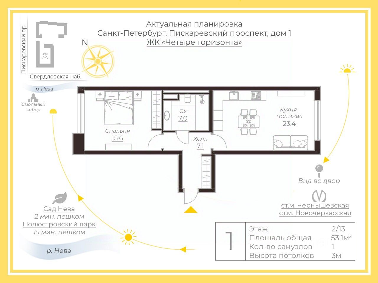 Просторная квартира распологается на 2 стороны с очень удобной планировкой 53,1м2.