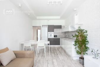 Квартира вся в светлых тонах, что создает еще большее ощущение воздуха и простора.
