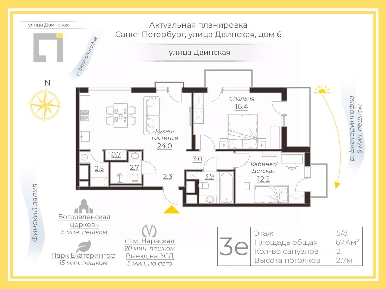Арт. 105442560 В продаже удобная и стильная 3-евро квартира в современном жилом комплексе "Принцип" у метро "Балтийская".