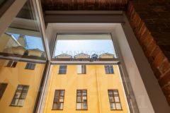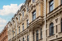 Дом расположен между двумя памятниками архитектуры под охраной КГИОПА .Проведен капитальный ремонт кровли, фасада, электросетей и внутренних коммуникаций.Перекрытия усилены металлическими балками для надежности.Вход через закрытый внутренний двор с кодовым замком.Закрытая парковка во дворе через арку с металлическими воротами.