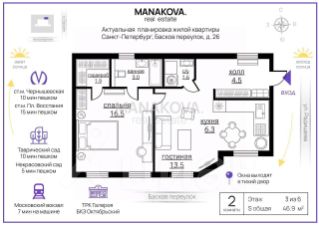 Таврический сад — 10 минут пешком, Некрасовский сад — 5 минут пешком.ТРК "Галерея" и "Невский центр" — около 15 минут пешком.Вблизи множество магазинов, кафе, кофеен, пекарен и ресторанов.