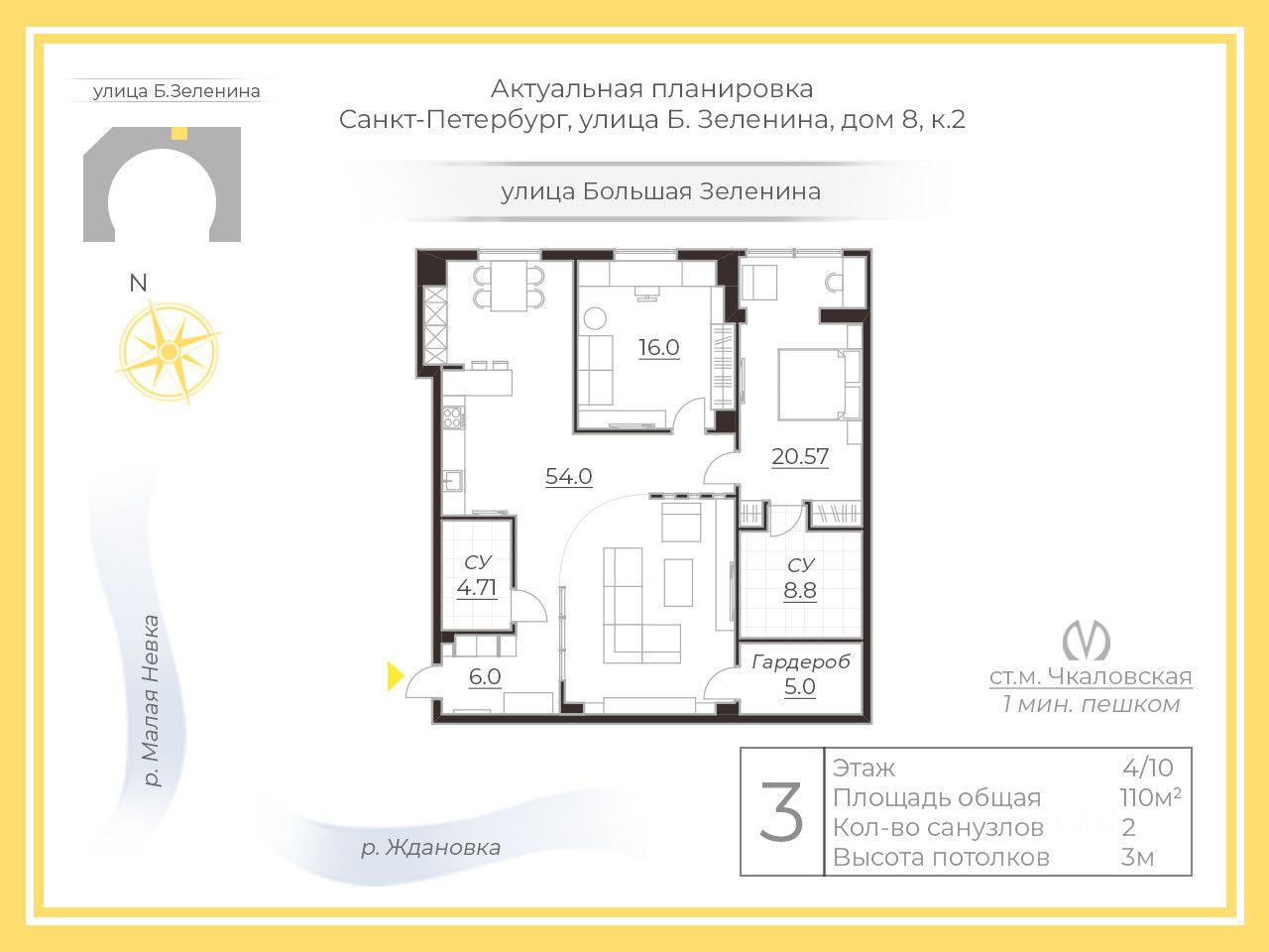Общая площадь квартиры 110 метров, с удобной функциональной планировкой, которая включает просторную кухню-гостиную 54 метра, оборудованную бытовой техникой от лучших мировых производителей (Kuppersbusch), кухня- гостиная совмещает в себе комфортную зону отдыха, где можно собираться всей семьей и вместительную кухню с красивой столовой (на кухне есть встроенный винный шкаф), мастер спальню 20,6 м с собственной ванной комнатой 8,8 м, спальню 16 м, вместительную гардеробную 5м , гостевой санузел 4,7м, где установлены современная стиральная и сушильная машины, а также удобные встроенные зоны хранения.