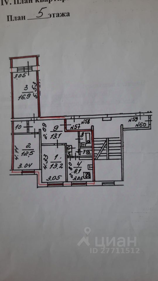 Квартира расположена на 5 этаже, пятиэтажного дома.