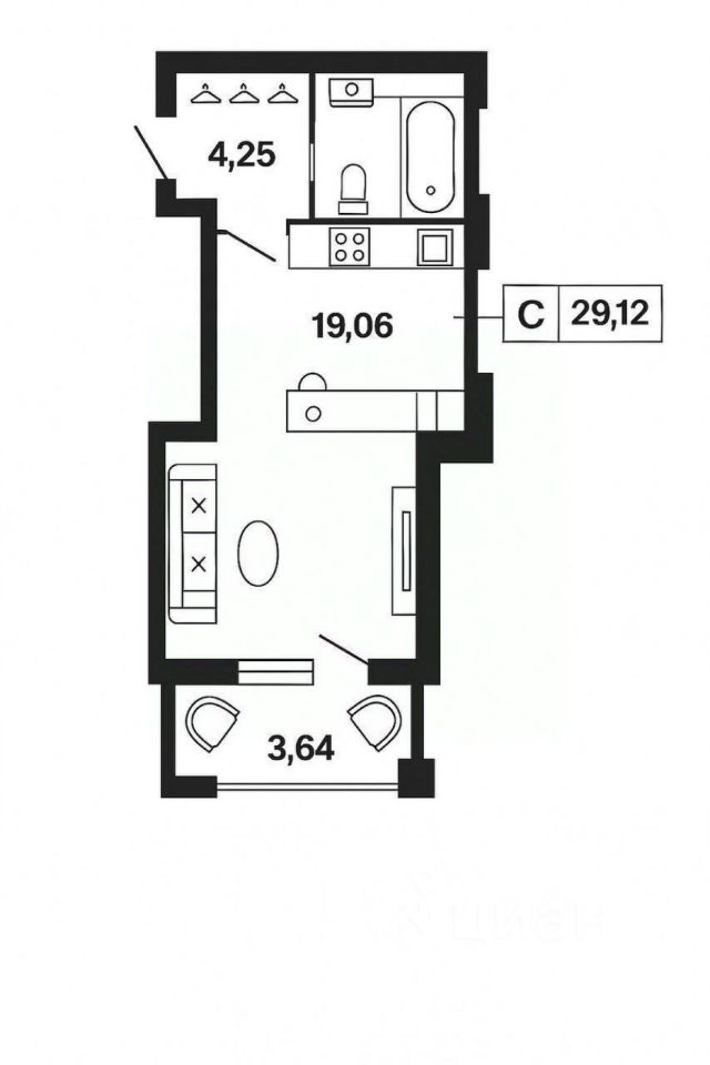 Предлагаем просторную студию 29,12 м² в доме премиум-класса.