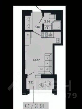 Жилая зона — 13,47 м², легко зонируется