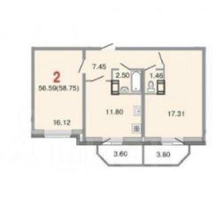 56,9 м²