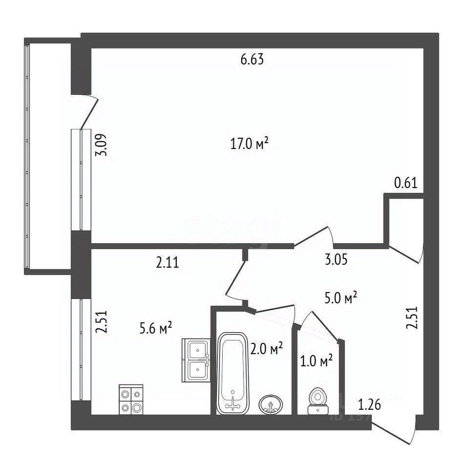Удачная планировка. Общая площадь 35 м², жилая — 25 м², изолированные комнаты.