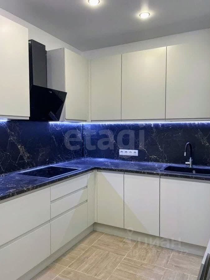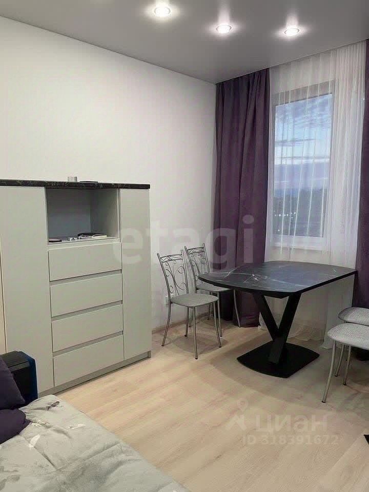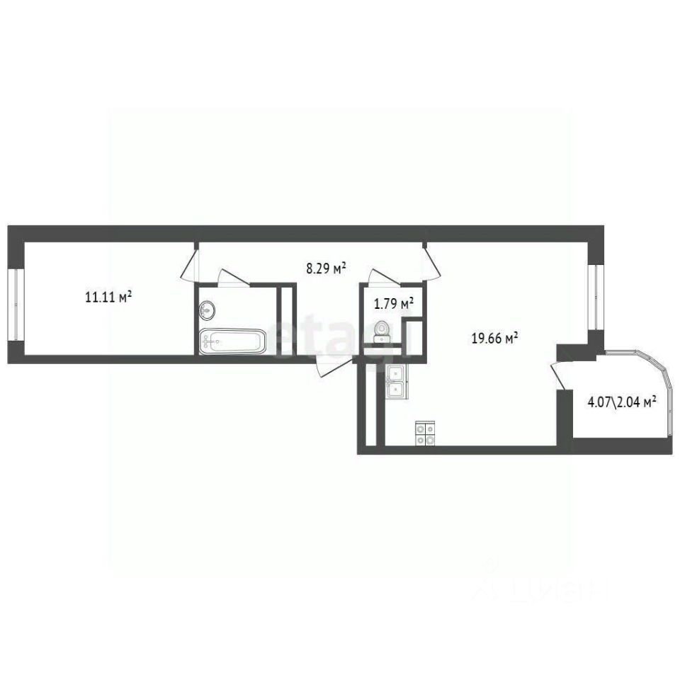 Площадью 46 м² расположена на 12 этаже жилого комплекса "Энфилд". Двусторонняя планировка обеспечивает хорошее естественное освещение и панорамные виды из окон. Просторная кухня-гостиная с выходом на лоджию позволяет гибко организовать пространство — зонирование легко реализовать с помощью мебели или легких перегородок, сохранив при этом ощущение простора. В квартире остаётся мебельный гарнитур от "Агстрем" со встроенной техникой: посудомоечной машиной, духовым шкафом и стиральной машиной.