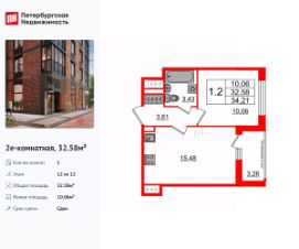 Удобная, классическая, функциональная европланировка, большая кухня-гостиная 15.48 м², вместительная прихожая 3.61 м². Общая площадь квартиры - 32.58 м², жилая  10.06 м², высота потолка 3 м.