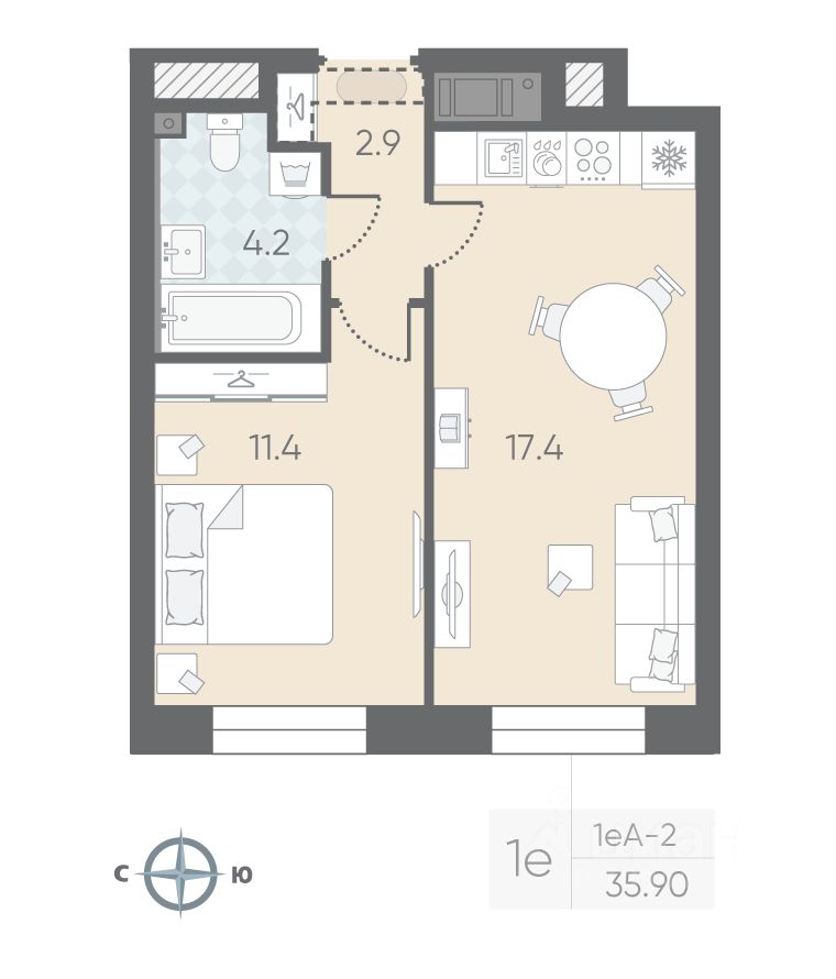 Продаётся 1-комнатная квартира в ЖК "Большая Охта" на 11 этаже. Общая площадь составляет 35.90 кв. м. Квартира с white box отделкой. Жилой комплекс "Большая Охта" располагается по адресу Санкт-Петербург, Красногвардейский.