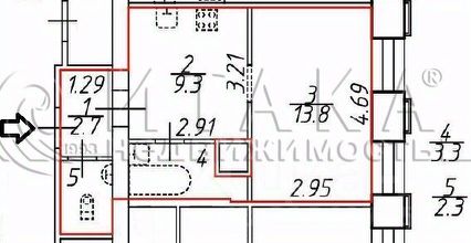 Общая площадь квартиры - 32,4 кв. м. Небольшая прихожая отделена от зоны кухни-гостиной, также отдельно выделена жилая комната площадью 14 кв. м.