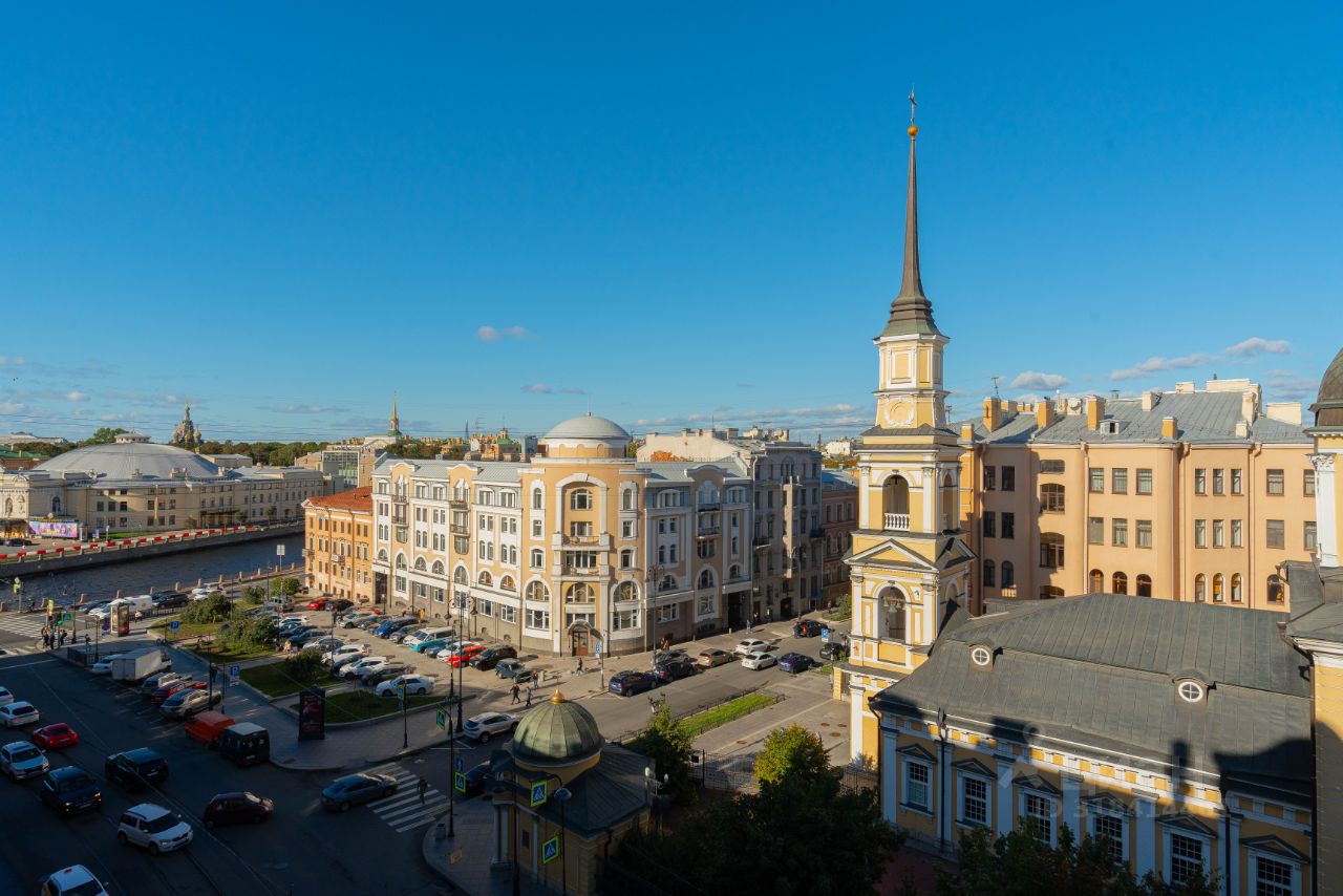 Квартира с невероятным видом - окна фасадной части квартиры выходят с одной стороны на Симеоновскую церковь, крыши Петербурга и перспективу улицы Белинского, с другой стороны на набережную реки Фонтанки и здание цирка Чинизелли. Вторя комната выходит во внутренний двор, большие высокие окна - много солнечного света.