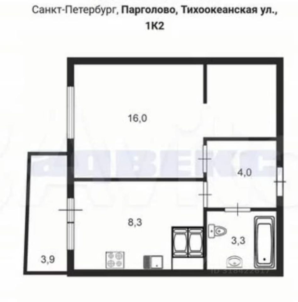 Предлагается к покупке уютная однокомнатная квартира площадью 32 квадратных метров, расположенная на четвертом этаже монолитного дома новой постройки (2021 год) в зеленом районе Санкт-Петербурга Парголово, по адресу улица Тихоокеанская, дом 1, корпус 2, строение 1.