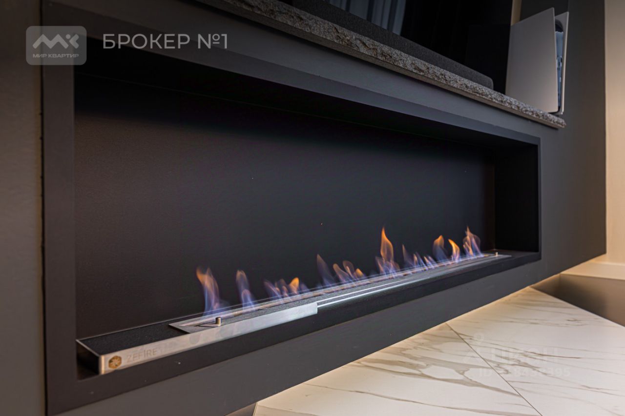 Большая Qled панель Sony с системой домашнего кинотеатра Harman Kardon, а так же камин, добавит уюта и атмосферы.