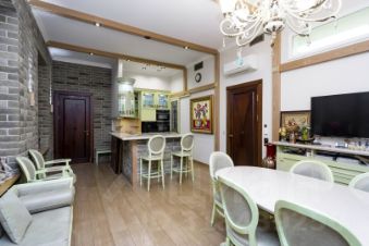Две квартиры на этаже. Тепло и тихо. Ремонт делали для себя, денег не жалели, только дорогие импортные материалы, вся мебель в квартире от поставщика Константиновского Дворца. На стенах венецианская штукатурка, много картин. На полу паркетная доска из дуба и итальянская плитка во влажных помещениях, где все полы с подогревом. Потолок 3,5 м. Окна, с энергосберегающим двойным стеклопакетом. Двери уровня элит, массив ореха. На окнах изысканные шторы из Италии.