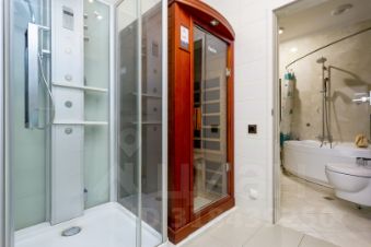 Три санузла. Ванна Jacuzzi, душевые с парогенераторами, Италия. Сантехника Villeroy & Boch. Кафель Versacea. Инфракрасная сауна Helo. Установлены кондиционеры Mitsubishi. Свет - мягкое карнизное и точечное освещение, итальянские светильники и люстры. Особая техническая гордость - это промышленный узел системы приточно-вытяжной вентиляции. Усилены, с заменой балок, перекрытия пола и потолка, с качественной тепло, гидро и шумо-изоляцией. Согласована вся перепланировка. Сигнализация, видеонаблюдение внутри и по периметру квартиры.