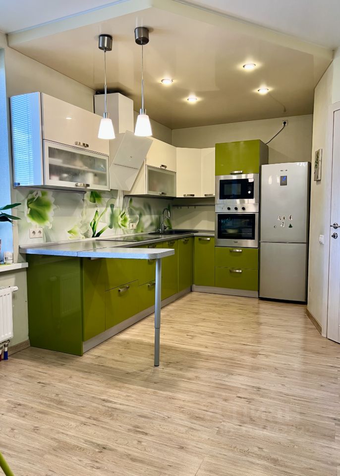Просторная кухня-гостиная площадью 22.7 кв.м , с мебелью и встроенной техникой , которые останутся новому собственнику!