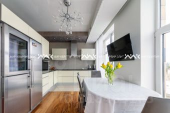 В отделке интерьера квартиры использованы натуральные материалы, на полу массив дерева, укомплектована бытовой техникой европейского производства и всей необходимой мебелью.