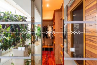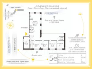 Планировка включает в себя: просторную кухню-гостиную с видом на воду и панорамными окнами, четыре изолированные спальни с видом на тихий двор, зимний сад , два сан.узла с хозяйственными помещениями и две большие гардеробные комнаты.