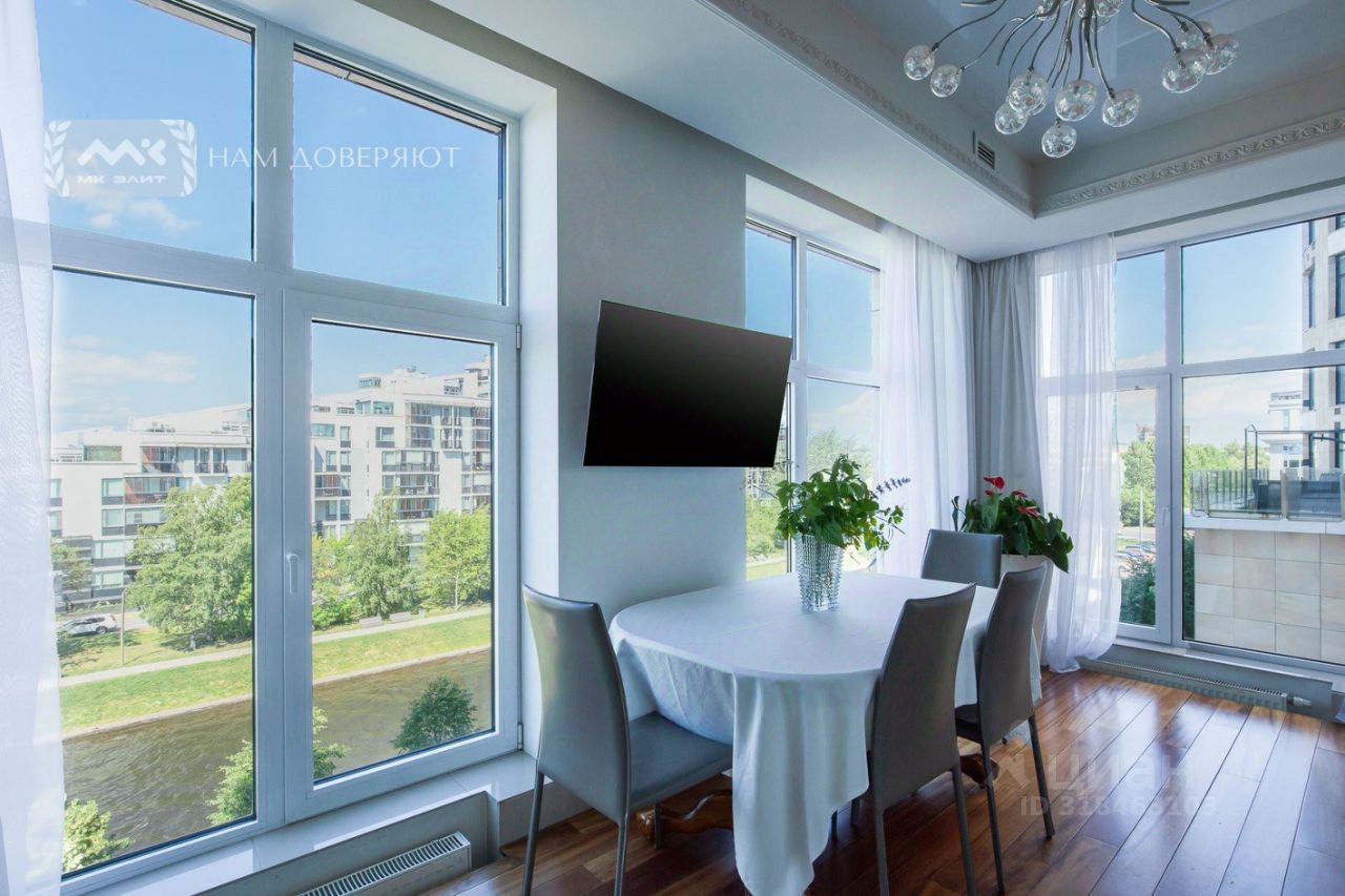 Видовая квартира с панорамными окнами расположена на высоком 4 этаже с видом на наб. реки Карповки, Каменный и Крестовский острова.