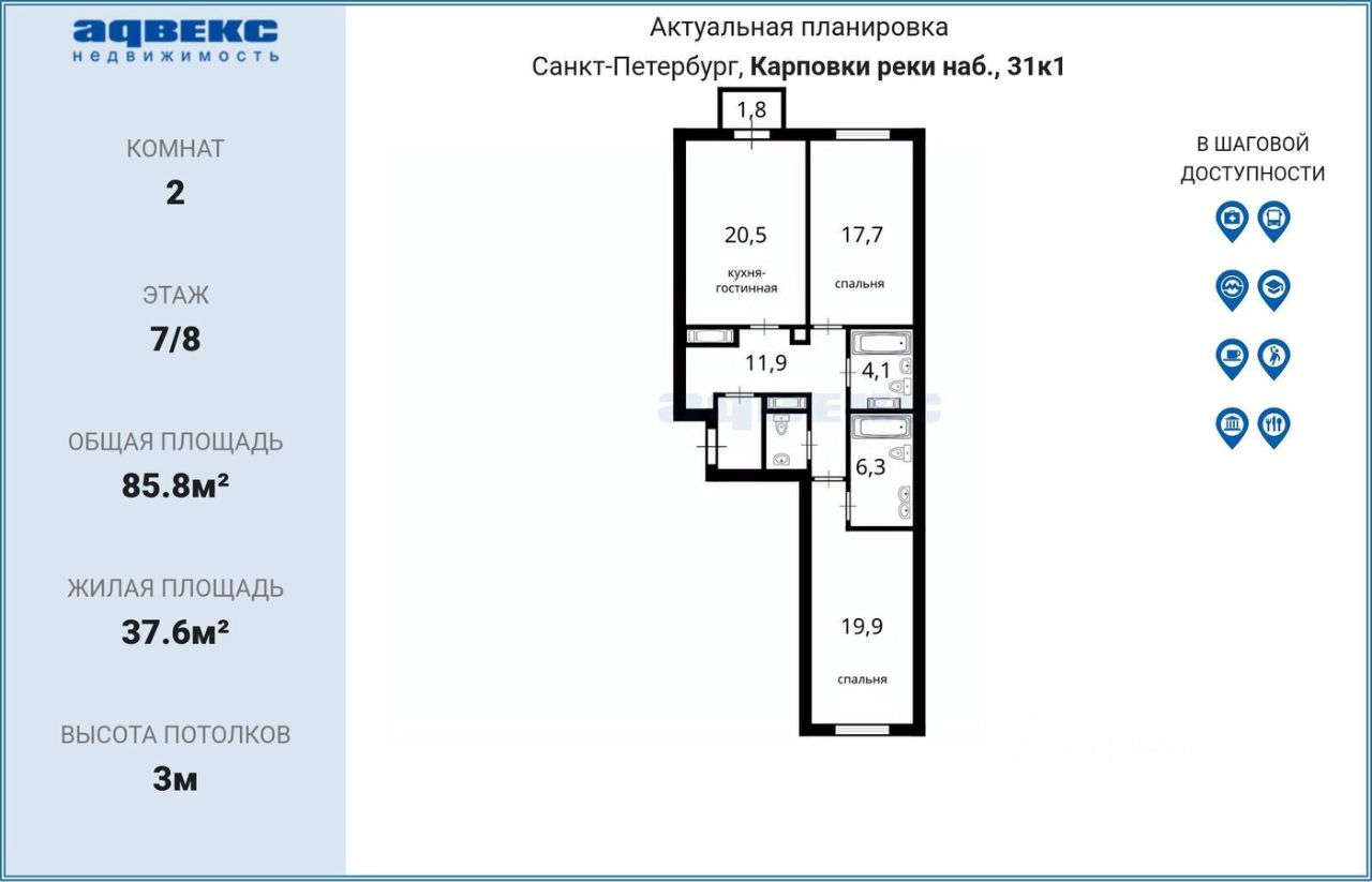 Редкий формат с тремя санузлами идеально для семьи или работы в премиальном районе.