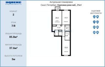 2 просторные спальни + кухня-гостиная с панорамным остеклением.
