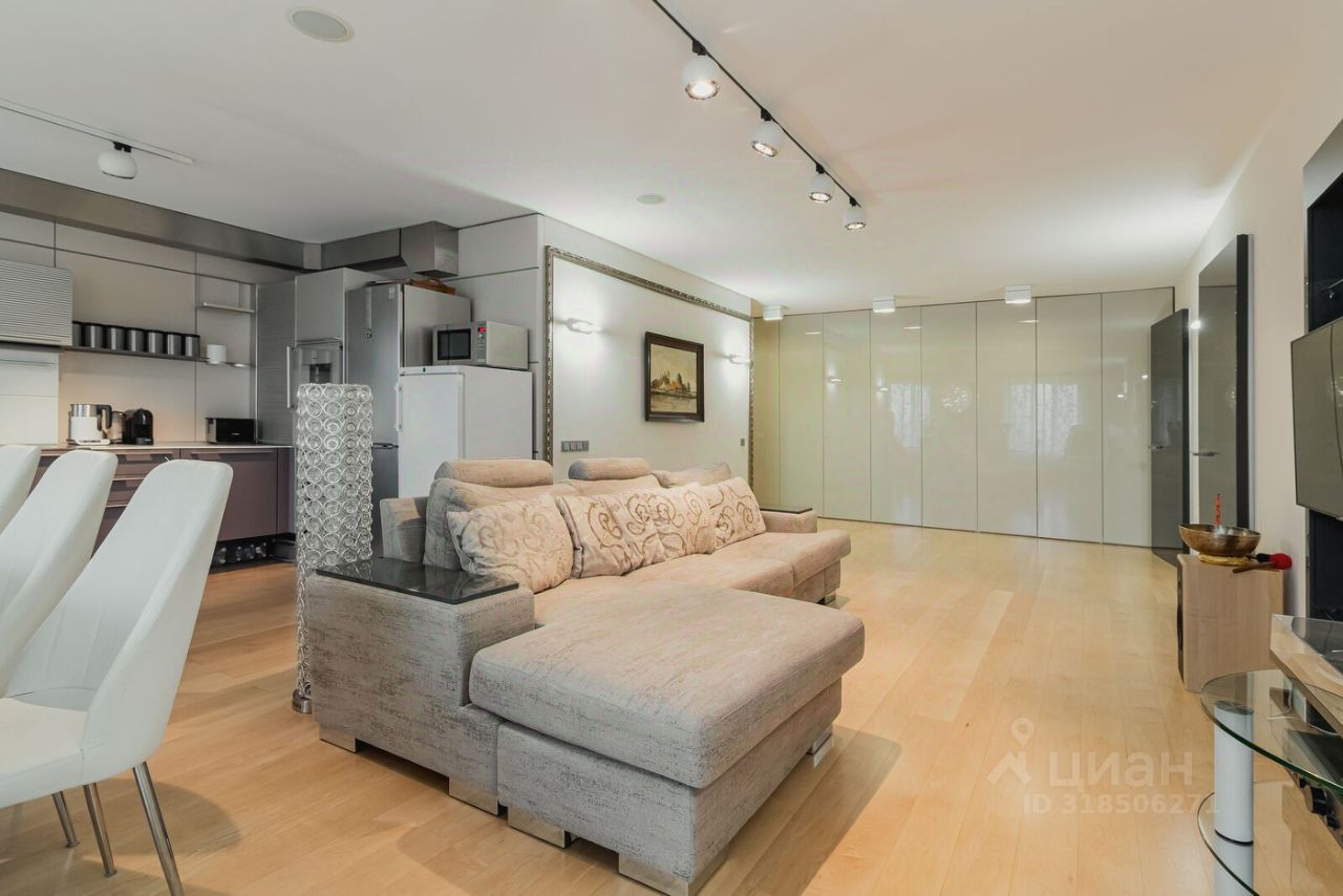 Просторная кухня-гостиная 58,3 м2: с премиальной немецкой кухней фирмы Bulthaup, обеденной зоной и зоной гостиной, идеально подходящая для семейных ужинов и дружеских встреч, укомплектована техникой от лучших производителей: Gaggenau, Liebherr, Kuppersbusch.
