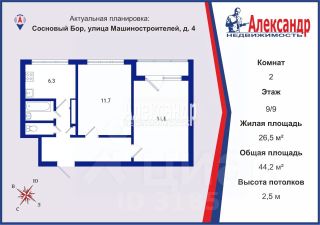 Продам замечательную 2х комнатную квартиру в живописном городе Сосновый Бор по адресу: ул. Машиностроителей, дом 4, 9 этаж из 9 возможных этажей.