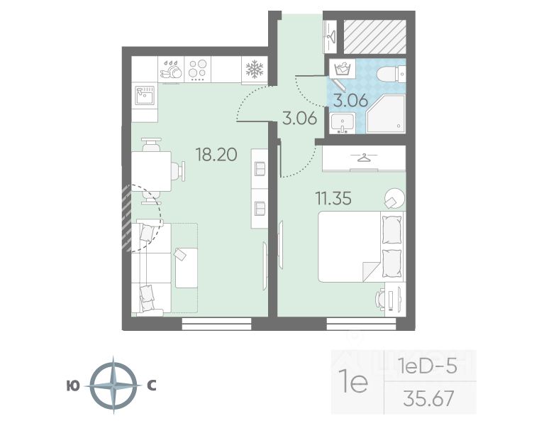 Продается 1-комнатная квартира в ЖК "Морская миля" на 2 этаже. Общая площадь составляет 35.67 кв. м. Квартира с чистовой отделкой. Жилой комплекс "Морская миля" располагается по адресу Санкт-Петербург, Красносельский.