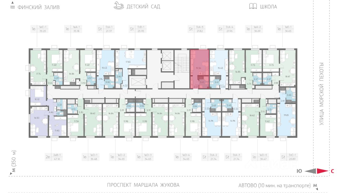 Продается студия в ЖК "Морская миля" на 15 этаже. Общая площадь составляет 21.82 кв. м. Квартира с чистовой отделкой. Жилой комплекс "Морская миля" располагается по адресу Санкт-Петербург, Красносельский.