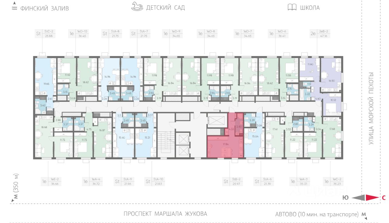 Продается студия в ЖК "Морская миля" на 16 этаже. Общая площадь составляет 25.97 кв. м. Квартира с чистовой отделкой. Жилой комплекс "Морская миля" располагается по адресу Санкт-Петербург, Красносельский.
