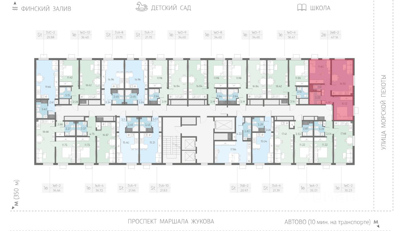 Продается 2-комнатная квартира в ЖК "Морская миля" на 10 этаже. Общая площадь составляет 47.16 кв. м. Квартира с чистовой отделкой. Жилой комплекс "Морская миля" располагается по адресу Санкт-Петербург, Красносельский.