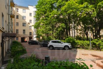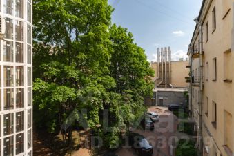 - Окна выходят на три стороны: из двух комнат на Загородный проспект и Коневскую церковь, из третей комнаты и кухни - в зелёный двор;