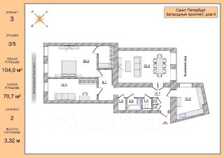 - Высокие потолки 3.32 метра;