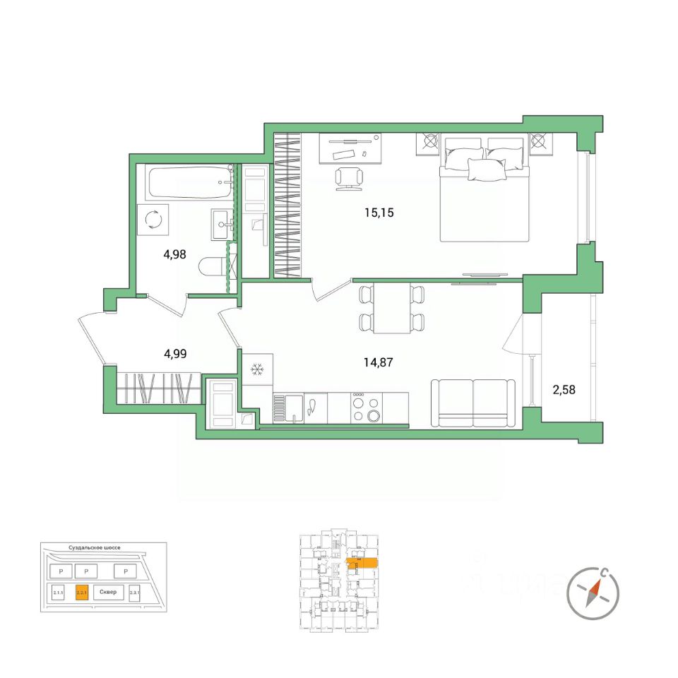 15,2 м²
