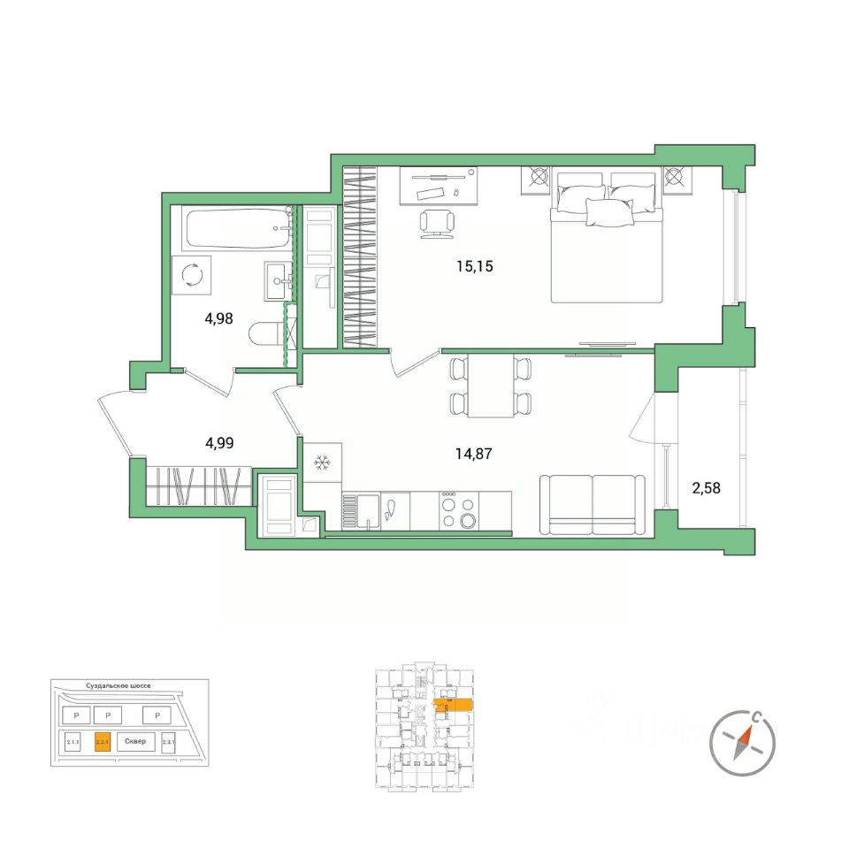 14,9 м²