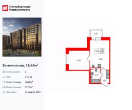 Удобная, классическая, функциональная европланировка, большая кухня-гостиная 17 м², вместительная прихожая 3.23 м². Общая площадь квартиры - 36.65 м², жилая 12.31 м², высота потолка 2.75 м.