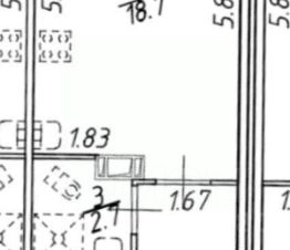 -Площадь квартиры позволяет удобно разместить всё необходимое для небольшой семьи, кроме спальной и кухонной зоны есть возможность обустроить маленький кабинет за колонной у окна и большой вместительный шкаф в прихожей.