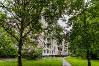 - Дом отделяет от пр. Большевиков широкая полоса деревьев и кустов.