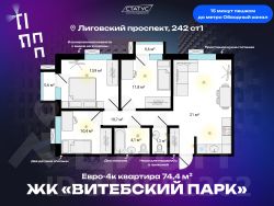 Евро-4к квартира 74,4 м² в ЖК Витебский парк
