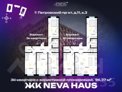 Просторная 3-комнатная квартира с вариативной планировкой в 5 корпусе ЖК NEVA HAUS
