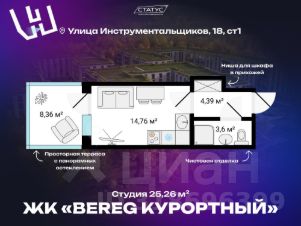 ! - Студия продается вместе с кладовкой 4м2 (в цену не включена)