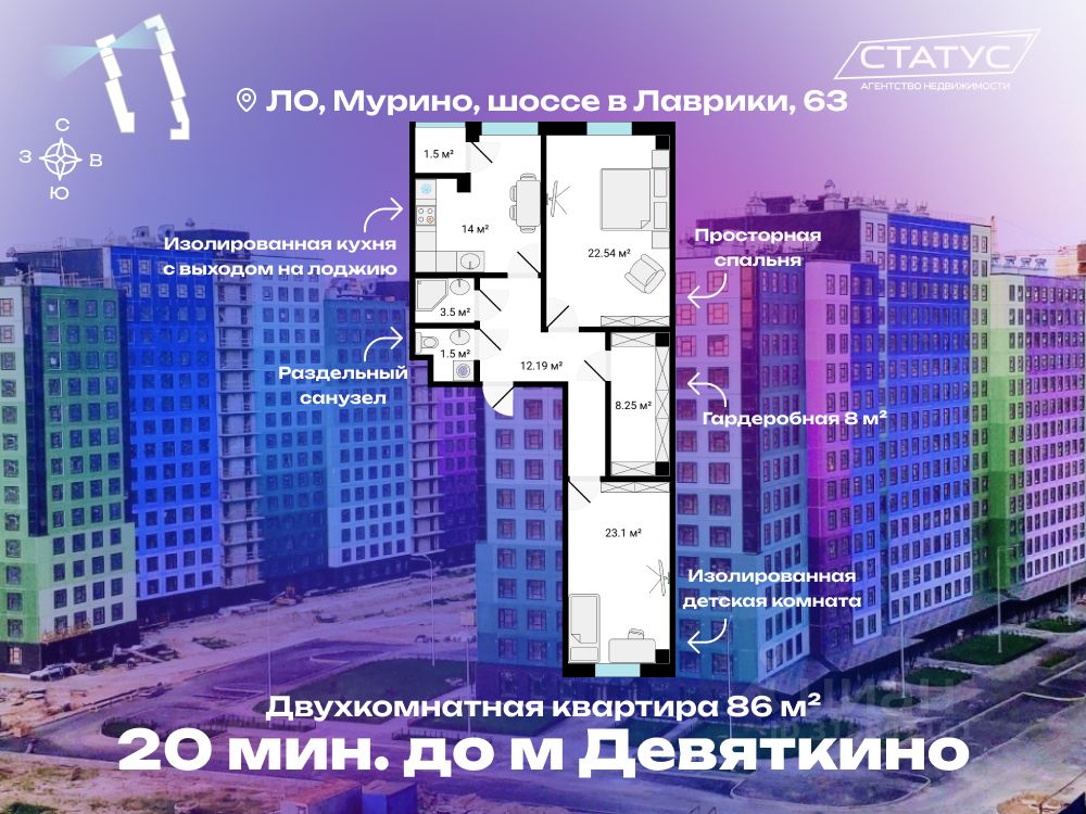 - г. Мурино, шоссе в Лаврики, 63 — всего 20 минут до станции метро Девяткино.