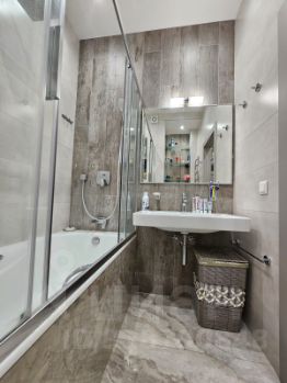 Общая площадь 90м² с двумя утепленными лоджиями 7,5 и 2,3 м. Квартира расположена на 24 этаже, высота потолков 3 метра.